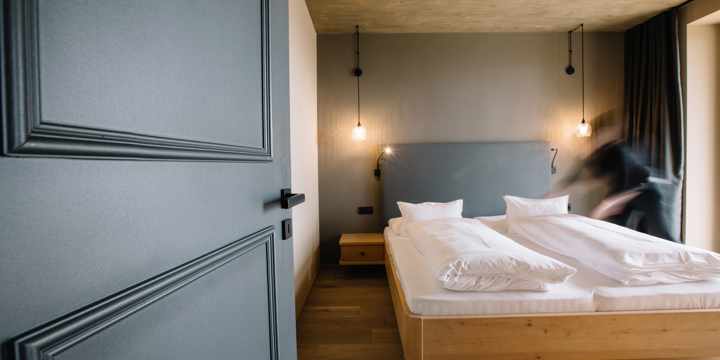 Striking mountain peaks rise into the sky and seem close enough to touch. The setting sun wraps the mountains in bright pink: a magnificent natural spectacle that accompanies you to sleep in the Mountain Suite. The spacious living rooms provide enough space for shared moments, accompanied by a beautiful mountain view.